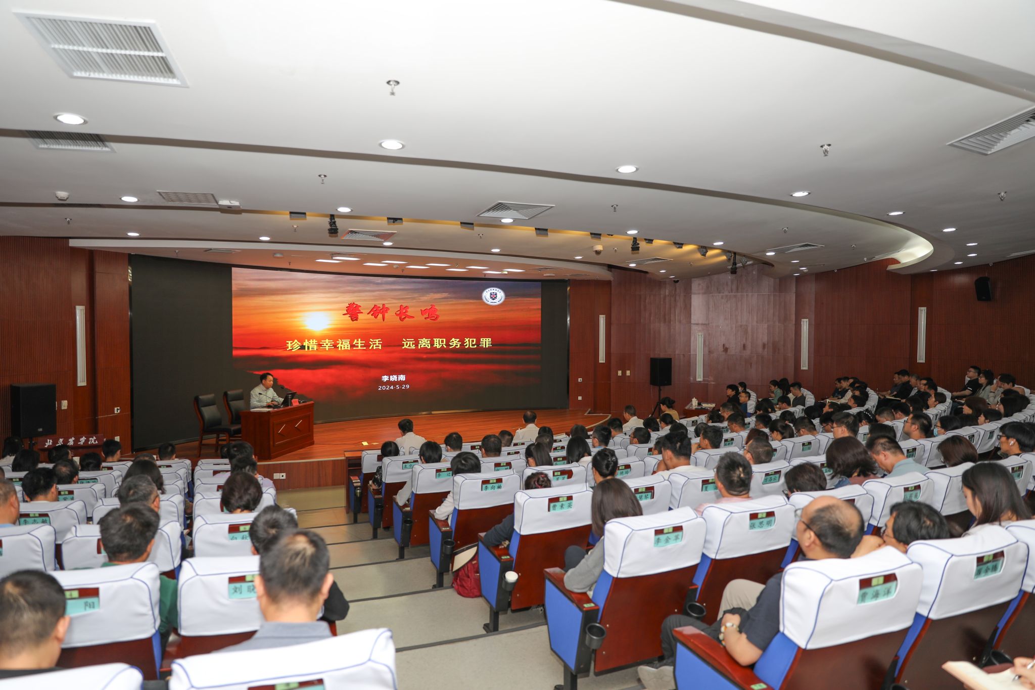 反腐警示教育专家、中央和国家机关部门党校师资课程库老师李晓南受邀以《警钟长鸣——珍惜幸福生活,远离职务犯罪》为题为党员干部上了一堂生动的反腐警示教育课。在报告中,李晓南结合《中国共产党纪律处分条例》《中华人民共和国监察法》《中华人民共和国刑法修正案(九)》等,从制度约束角度,对法规条例的实践逻辑进行解读,用鲜活的案例、生动的图片视频、详实的数据,重点围绕职务犯罪的危害性、职务犯罪成本分析、对职务犯罪的反思和如何远离职务犯罪几个方面,阐述了职务犯罪带来的巨大危害和导致的惨痛教训。劝诫党员干部一定要算好“政治危害账”“亲情伤害账”“经济损失账”“个人损失账”“精神损失账”“人身自由账”“身体健康账”这人生七本账,时刻保持清醒头脑,守好底线、守住红线。