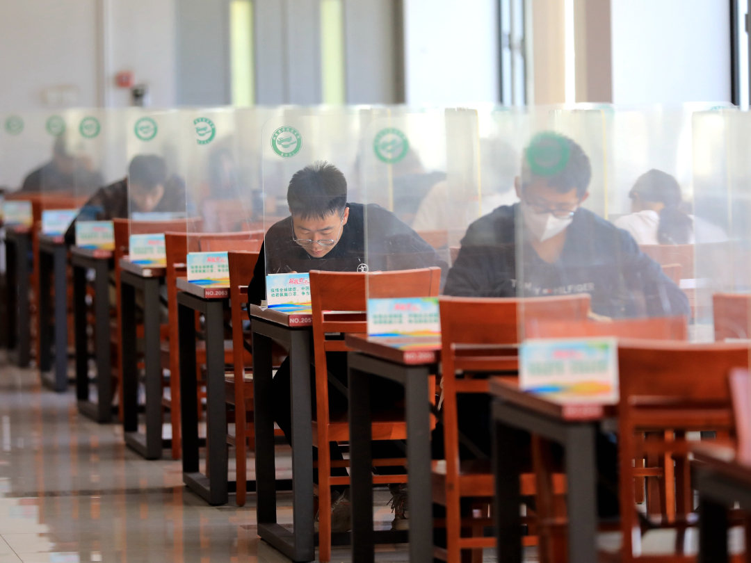 图书馆内伏案苦读的身影