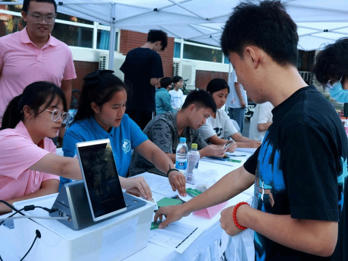 早已守候在报到点,等待新同学的到来