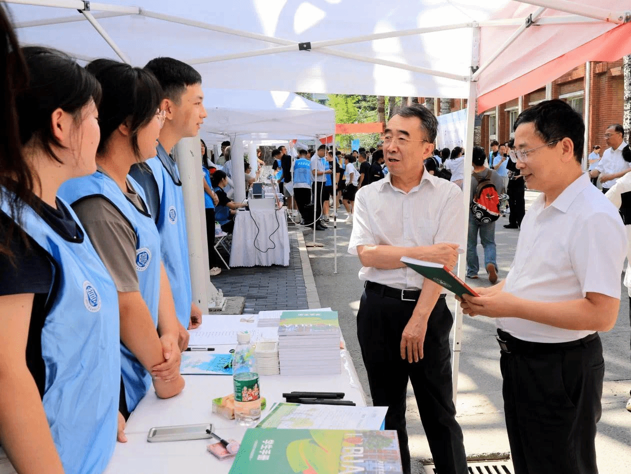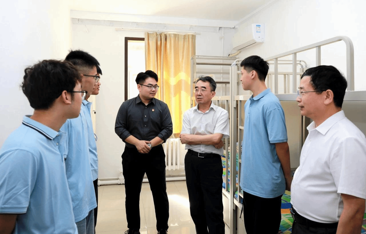以及全体校领导来到迎新现场、学生宿舍等地