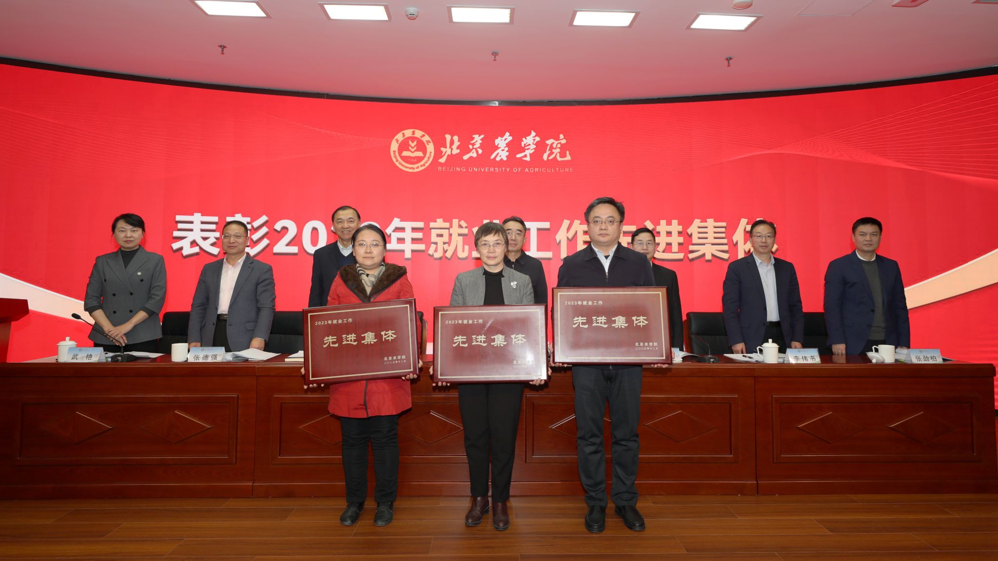 校党委副书记仲丛生宣读《关于表彰2023年就业工作先进集体的决定》。校领导为获得表彰的先进集体颁奖。