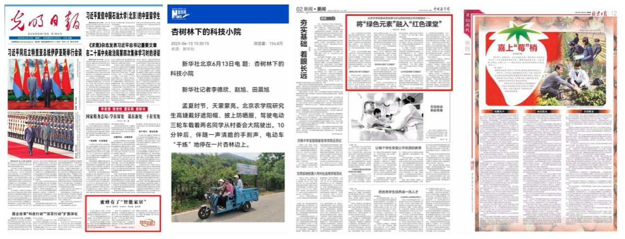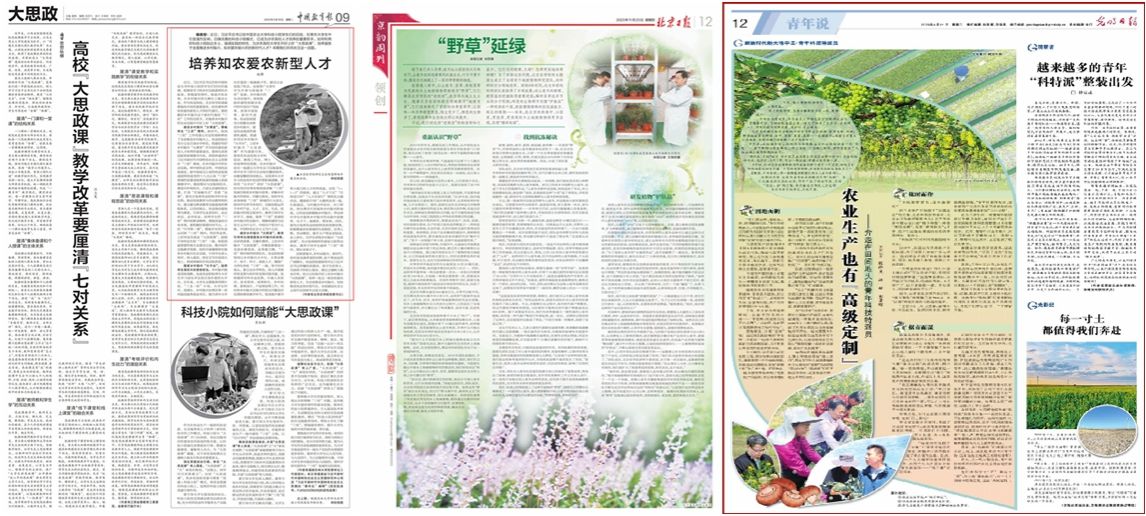 坚决贯彻落实中央和市委关于思政课改革创新的部署和要求,打造“首善标准、红色基因、北农特色”的思政金课,全面推进习近平新时代中国特色社会主义思想“三进”工作,大力推进“四史”教育融入思政课教学。深入推进课程思政,2门课程思政案例获评“全国高等农林院校课程思政建设研讨会”优秀教学案例。大力树正气、树榜样、树典型,隆重举办2022-2023年度“最美北农人”颁奖典礼,发挥榜样示范引领作用。学校获评3个“北京高校思想政治工作创新示范项目”,6个项目全部被评为2023年度北京高校师生服务新时代首都发展“双百行动计划”优秀示范项目,在全市高校名列第一。持续讲好“北农故事”,2023年,新华社、人民日报、光明日报、中央电视台、北京电视台、北京日报等主流媒体对世界杯官网报道500余次,实现了新突破。