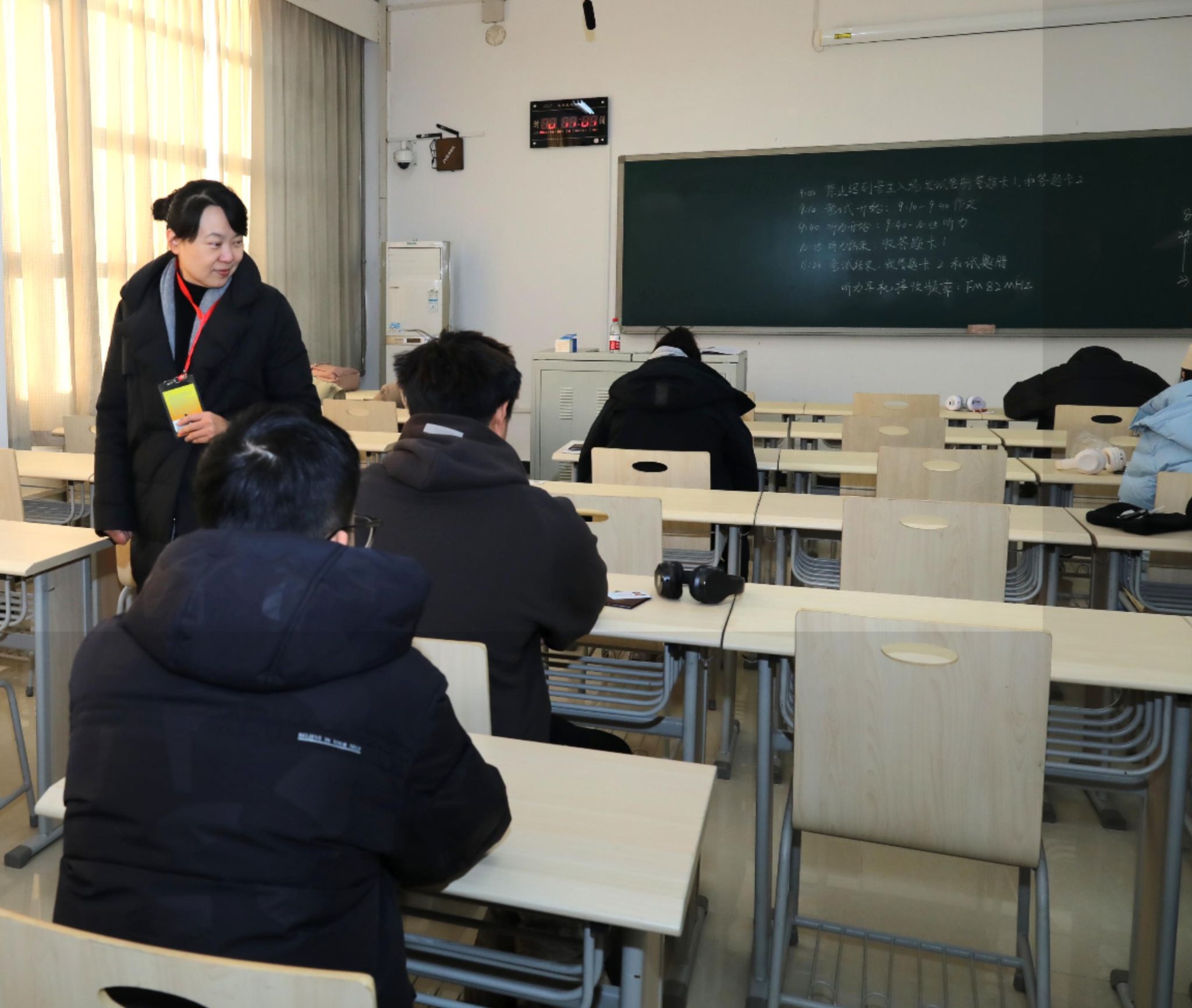 考试期间,武艳带领相关职能处室负责人到考试现场检查指导组考工作。本次考试,世界杯官网严格按照国家教育考试标准化考点相关规定和北京教育考试院《关于做好2023年下半年北京地区全国大学英语四、六级考试考务工作的通知》要求进行,各项工作开展科学规范,考场气氛紧张严肃,学校各相关部门密切配合,工作人员尽职尽责,考务工作井然有序。考前学校还组织召开了考务与保密工作培训会,并制定舆情监控和突发事件应急工作预案,进一步明确任务、细化分工、压实责任,确保每一项组考任务落到实处,确保了本次考试安全、平稳、有序。