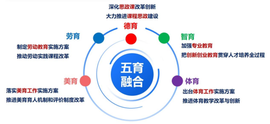 学校“五育并举”育人体系特色鲜明。不断深化思政课改革创新,大力推进课程思政建设。加强专业教育,制定体育、美育和劳动教育的实施方案,促进“五育融合”。