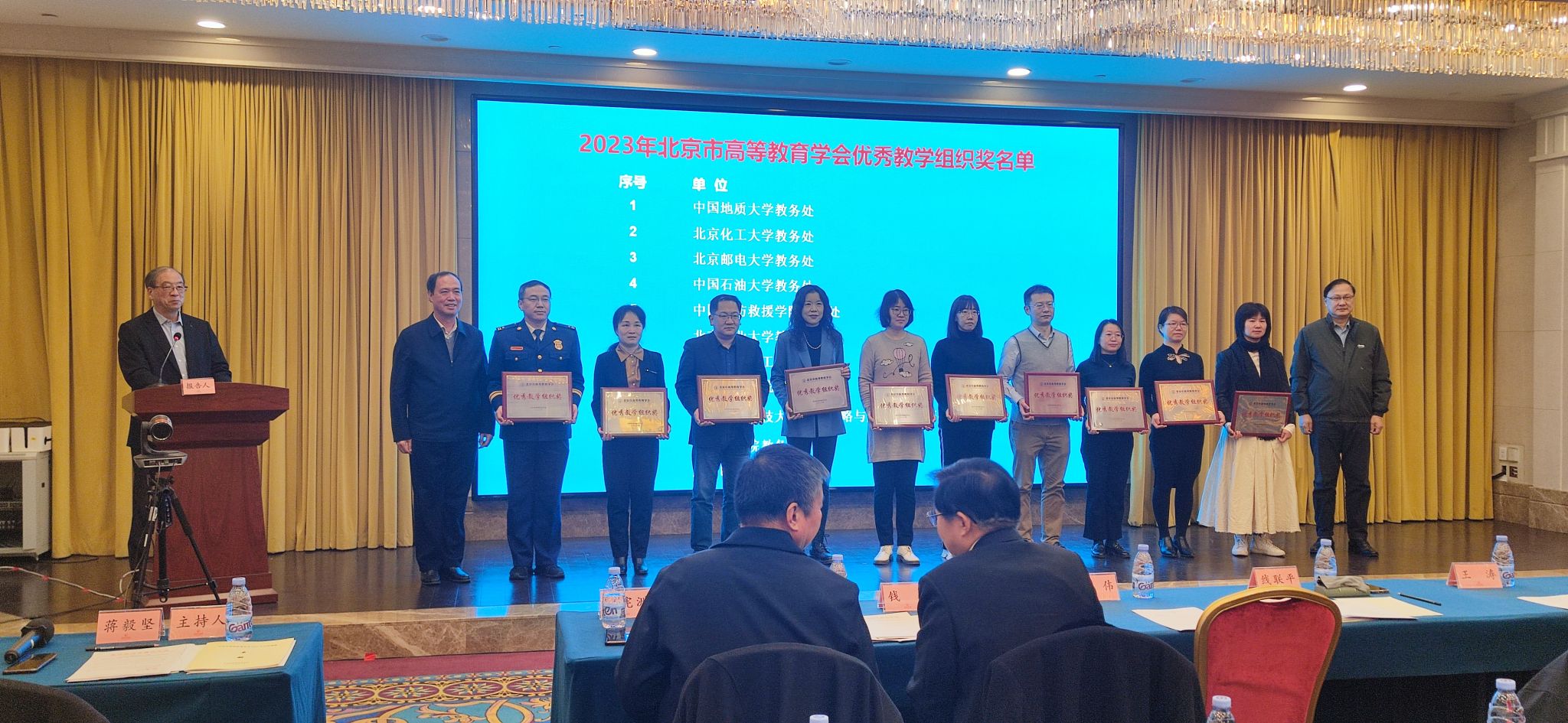 2023年11月25日上午,北京市高等教学会召开了2023年学术年会暨理事会,会上发布了《北京市高等教育学会关于表彰优秀研究分会、优秀工作者、优秀教学组织奖和突出贡献奖的决定》,世界杯官网教务处获2023年北京市高等教育学会优秀教学组织奖,教务处副处长颜亭玉上台领奖。