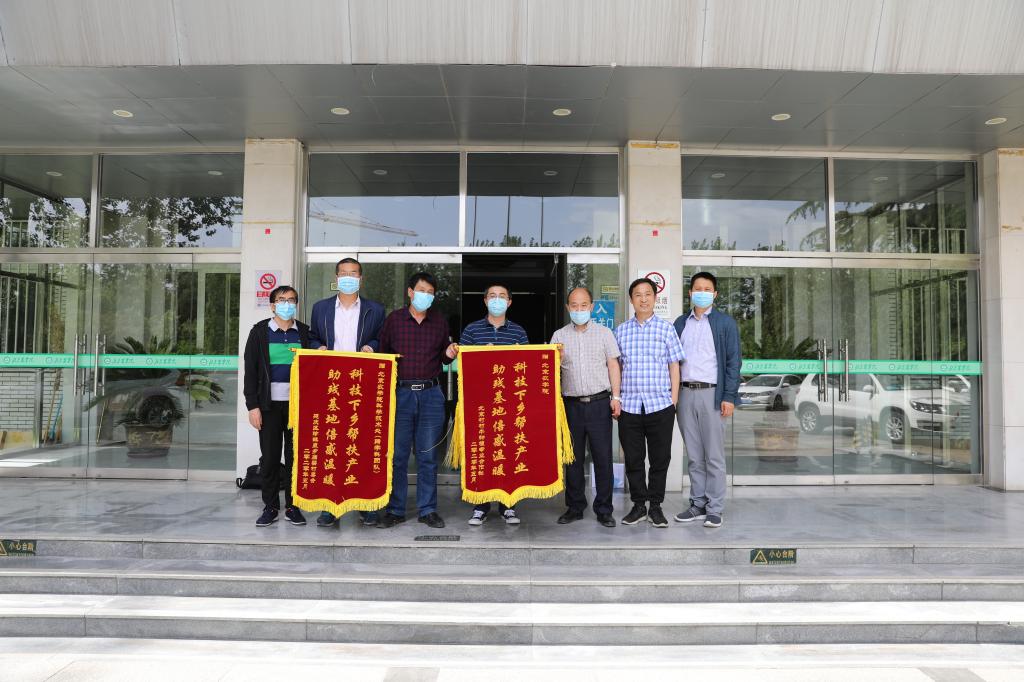 2020年5月11日下午,延庆区珍珠泉乡庙梁村“第一书记”张历、村村牛种植专业合作社负责人崔富国来校座谈并赠送锦旗。科技处副处长谢远红、生资学院王进忠老师,植科学院谷建田老师、王建文老师参加座谈。