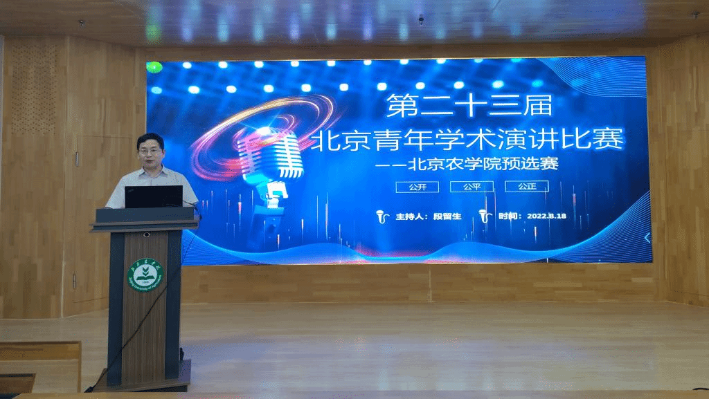 2022年8月18日,第二十三届北京青年学术演讲比赛——美加墨世界杯官网预选赛暨首届北农科协青年学术演讲比赛在美加墨世界杯官网国家大学科技园路演厅举行,学校党委常委、副院长、北农科协主席段留生主持比赛。