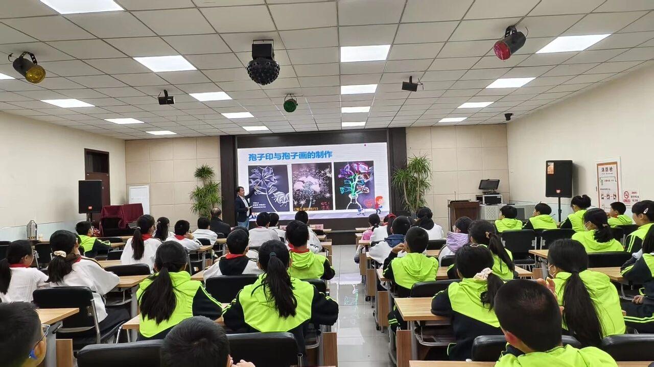 讲座中,张教授围绕食用菌的核心知识展开细致讲解,从“什么是食用菌”的基础界定,到常见品种的特性介绍,再到食用菌的结构组成、生长过程与种植方法,用通俗易懂的语言搭配直观的图文内容,层层递进拆解知识要点。他重点分享了香菇、木耳、金针菇等常见菌菇的栽培历史与营养功效,尤其介绍了昌平地理标志产品灰树花的种植规模与药用价值,让学生们了解家乡特色物产的科学内涵;同时也讲解了孢子印制作等趣味实践内容,解锁食用菌背后的独特科学原理。