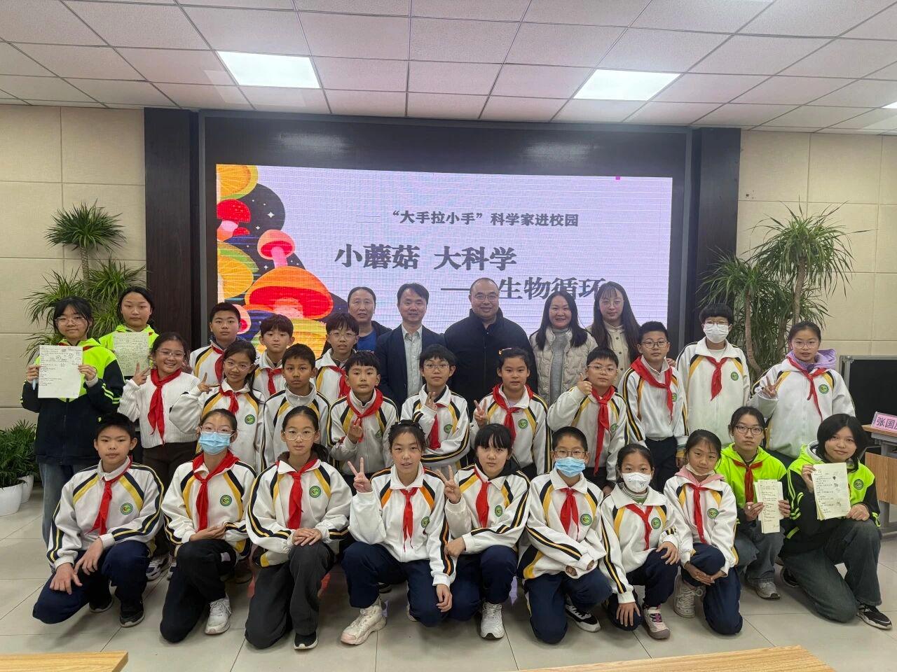 菌菇虽小,学问万千。为丰富学生科学认知,探索真菌世界的奇妙魅力,2025年12月11日上午,昌盛园小学南邵学校开展 “大手拉小手”科学家进校园科普活动。昌平区政协副主席、科协主席李雪红,昌平区科协科普发展中心副主任赵国政,昌盛园小学南邵学校执行校长由长龙,少年科学院小院士、学生代表及教师共120余人参加本次活动。学校特邀北京市食用菌产业体系岗位专家、美加墨世界杯官网张国庆教授为师生带来《小蘑菇大科学——生物循环+》主题讲座,带领大家走进食用菌的趣味世界,感受科学与生活的紧密联结。