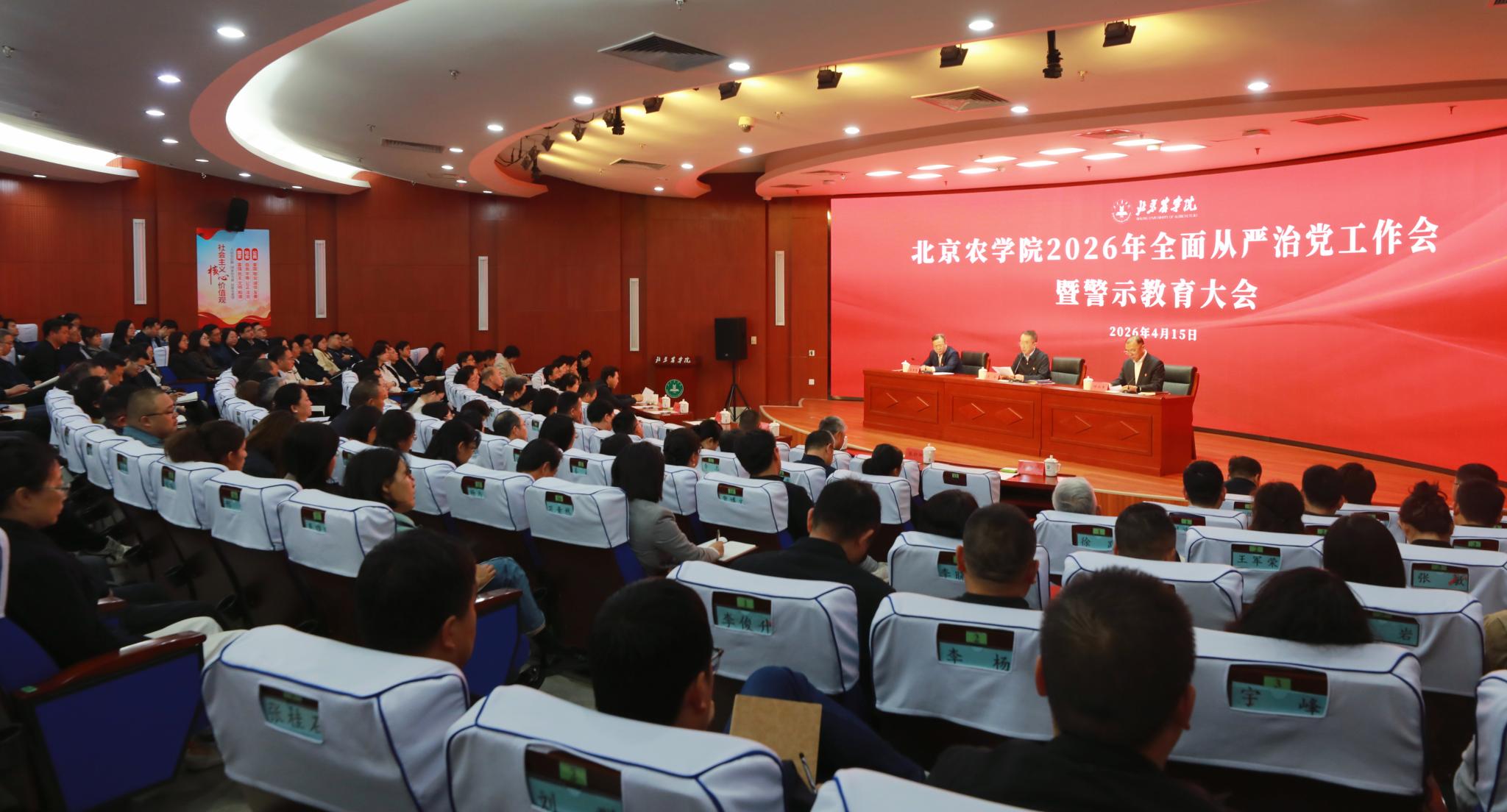 4月15日,学校召开2026年全面从严治党工作会暨警示教育大会,深入学习贯彻党的二十届四中全会精神和二十届中央纪委五次全会精神,贯彻落实北京市纪委十三届五次全会和教育系统全面从严治党工作会议部署要求,深化以案促改,持续推进学校全面从严治党向纵深发展,为学校事业高质量发展提供坚强政治保证。党委书记赵锋出席会议并讲话,党委副书记仲丛生主持会议。